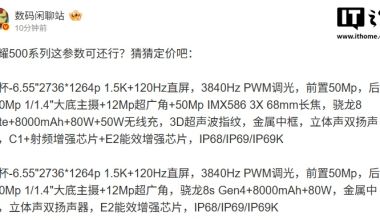 荣耀500系列参数汇总 全系8K超大电池和2亿像素主摄