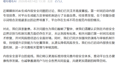哩布哩布AI就内容安全问题致歉,称已启动专项排查与技术修复