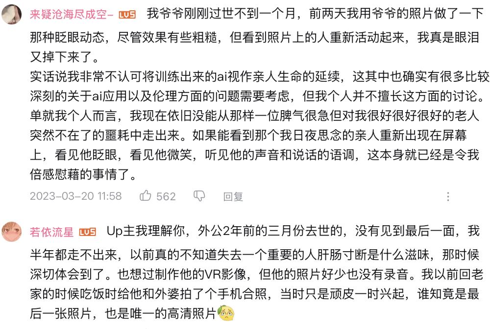 AI 复活奶奶视频下的评论区|图片来源:B 站