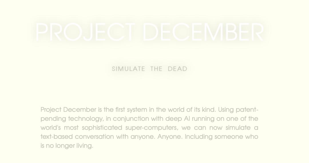 小公司如 Project December,口号就是「模拟逝者」。用户可以输入故人生前的资料、口癖、个性……AI 便会根据这些数据生成一个模仿逝者语气、表达方式的聊天机器人。10 美元能进行 100 条对话。