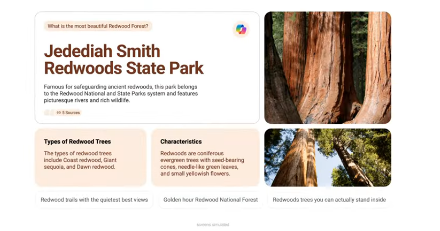 今天宣布的有趣功能之一是 Bing 搜索引擎的 Copilot Search。该工具将传统网络搜索与生成式搜索结果相结合。