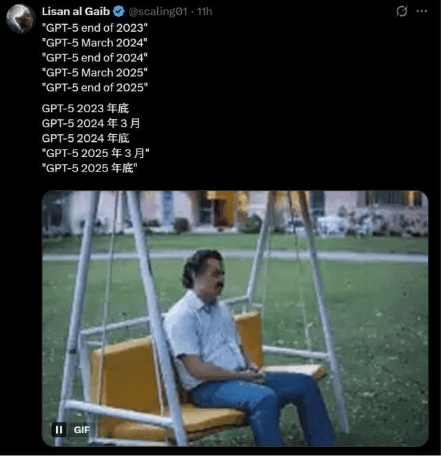 对于GPT-5的一鸽再鸽,有网友做出了下面这个时间表来调侃。