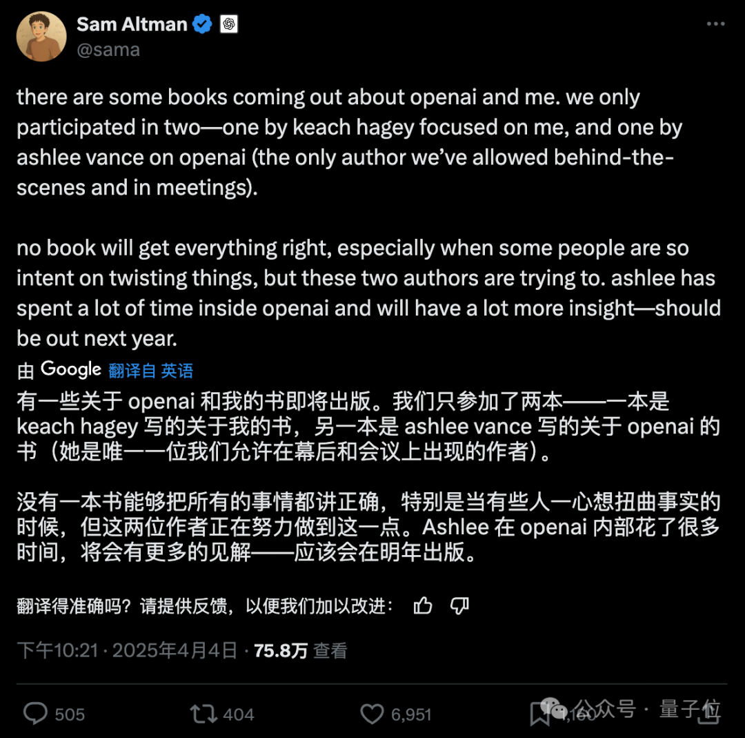 奥特曼发布“变卦”消息之外,还不忘给自己带一波货,称有两本他亲自参与的书即将发布: