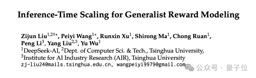 这篇论文的名字叫做Inference-Time Scaling for Generalist Reward Modeling,由DeepSeek和清华大学共同提出。