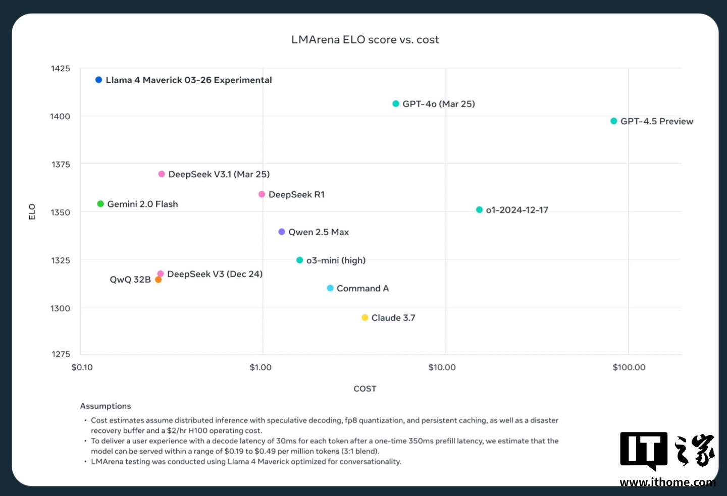 Meta 内部测试显示,Maverick 模型最适合用于“通用 AI 助手和聊天”等应用场景,该模型在创意写作、代码生成、翻译、推理、长文本上下文总结和图像基准测试中表现超过了 OpenAI 的 GPT-4o 和谷歌的 Gemini 2.0 等模型。然而 Maverick 与谷歌的 Gemini 2.5 Pro、Anthropic 的 Claude 3.7 Sonnet 和 OpenAI 的 GPT-4.5 等功能更强大的最新模型相比仍有一定进步空间。