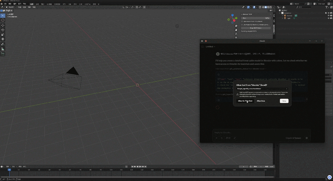 消息一发送,它二话不说就开始操作Blender ,创建几何体、调整参数、设置材质... 几分钟后,模型直接送到我眼前了。别的不说,能做出来,就已经比我强了。