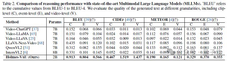 与通用多模态大模型对比,Holmes-VAU在各种时序粒度的视频异常理解上都展现出显著优势。