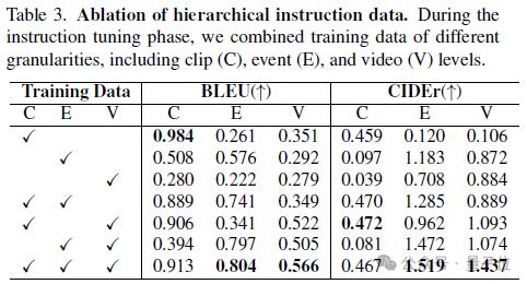 层次化指令数据构建(Hierarchical Instruction Data Construction):针对不同层级的视频及其文本标注,设计不同的任务,构造任务相关的问题并与文本注释组合,得到最终的指令数据。
