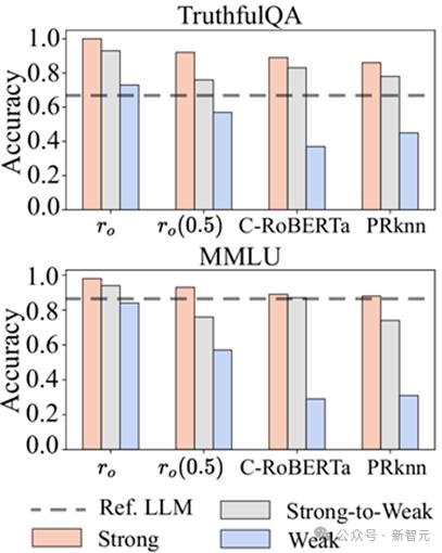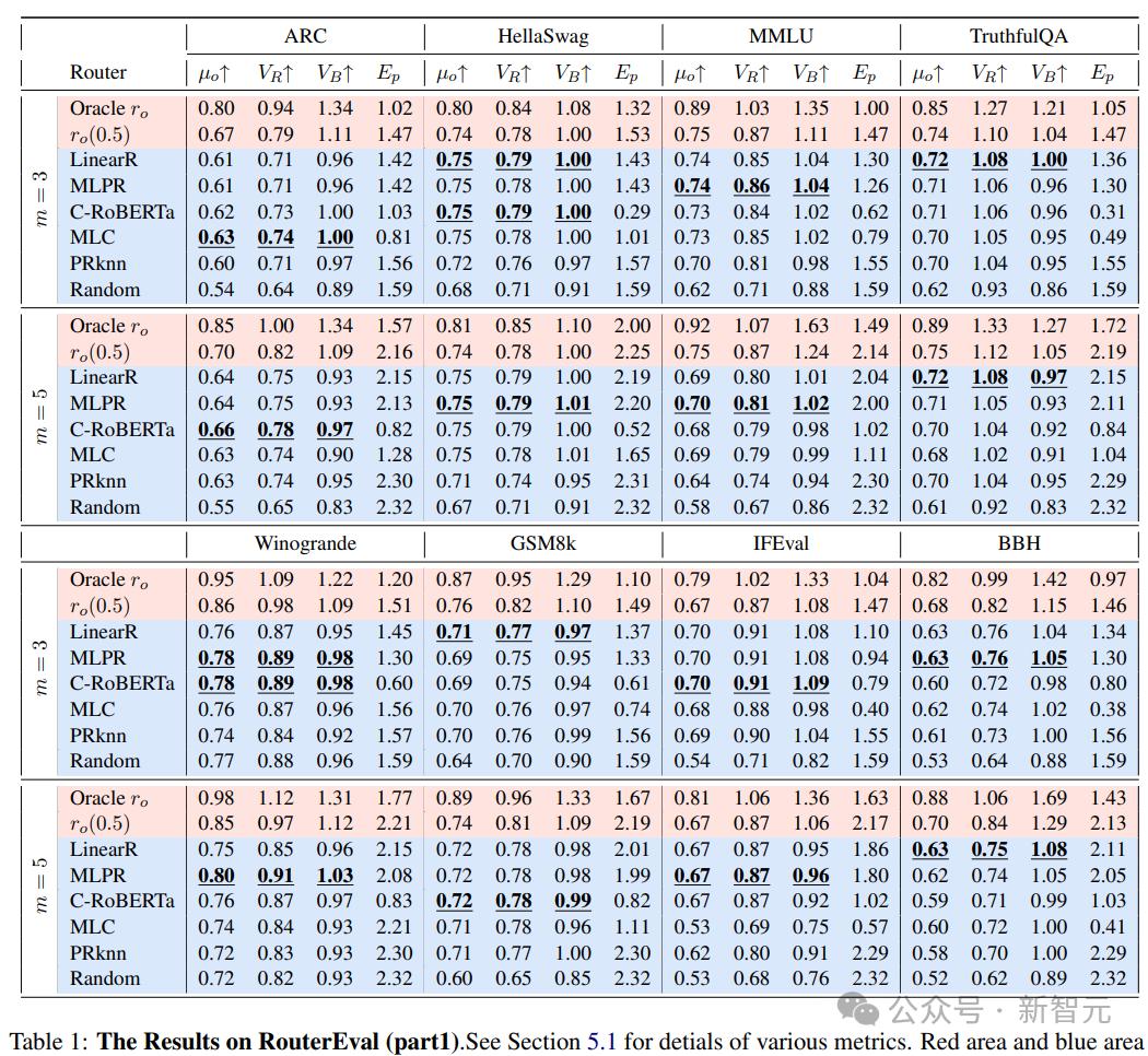 利用RouterEval基准中的2亿条性能记录,研究团队构建了理论性能上限——Oracle Router(r_o)。Oracle Router是一种理想化的路由器,它能够始终为每个输入选择性能最佳的LLM,因此代表了路由LLM系统的性能上限。