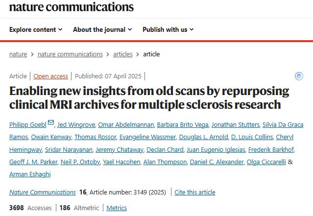 相关研究以「Enabling new insights from old scans by repurposing clinical MRI archives for multiple sclerosis research」为题,发表于 Nature Communications。