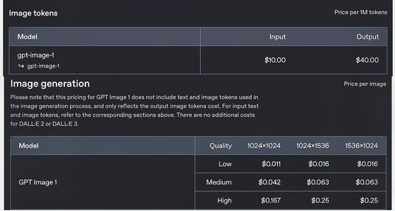 ▲图为gpt-image-1模型根据消耗的不同的token数量可能产生不同费用。