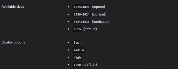还需要注意的包括,方形图片以标准质量生成的速度最快,默认大小是1024×1024。
