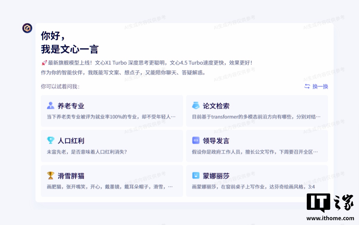 IT之家从官方介绍获悉,两款新模型具备多模态、强推理、低成本三大特性。文心 4.5 Turbo 在多模态能力、去幻觉、逻辑推理和代码能力等方面明显增强;文心 X1 Turbo 相较文心 X1,具备更长的思维链和更强的深度思考能力,同时进一步增强了多模态和工具调用能力,在性能提升的同时价格再降 50%,每百万 token 输入价格 1 元,输出价格 4 元。