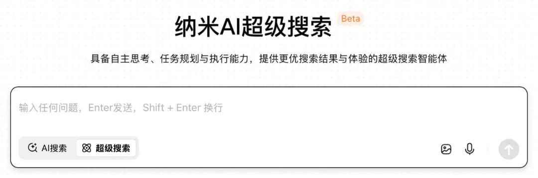 而在它的右侧,新增“超级搜索”,提示这是一个“具备自主思考、任务规划与执行能力,提供更优搜索结果与体验的超级搜索智能体”。
