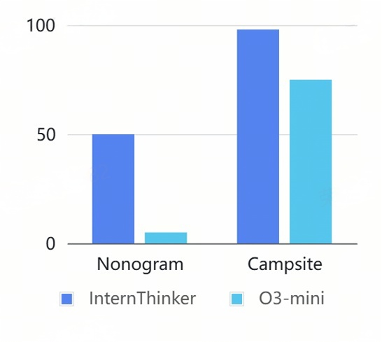 InternThinker在包括数十个任务的测试集上的平均能力超过o3-mini、DeepSeek-R1以及Claude-3.7-Sonnet等国内外主流推理模型