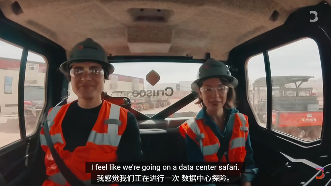 接下来,他们来到了一个 GPU 数据大厅,这里会有一个非常大的 Blackwell GPU 集群。