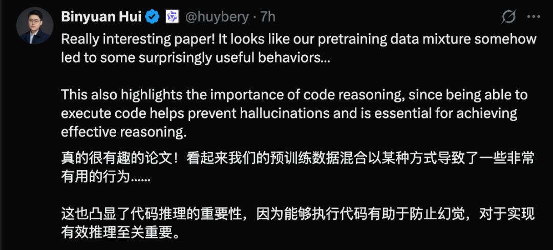 也许是预训练数据混合以某种方式意外导致了一些有用的行为,又一次侧面印证了代码推理的重要性。
