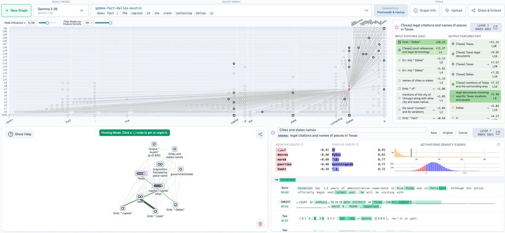 该工具通过构建“归因图”(Attribution Graph),帮助研究者可视化模型内部运作,并支持交互式探索。这一项目由 Anthropic Fellows 程序的参与者与专注 AI 解释性研究的 Decode Research 团队联合推动,旨在提升 AI 安全性。
