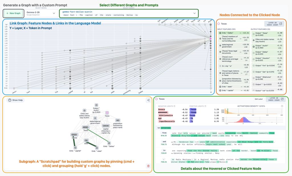 用户使用该工具,不仅能生成自定义的归因图,追踪支持模型的内部逻辑,还能对图形进行标注、分享,甚至通过调整特征值观察模型输出的变化,从而验证研究假设。