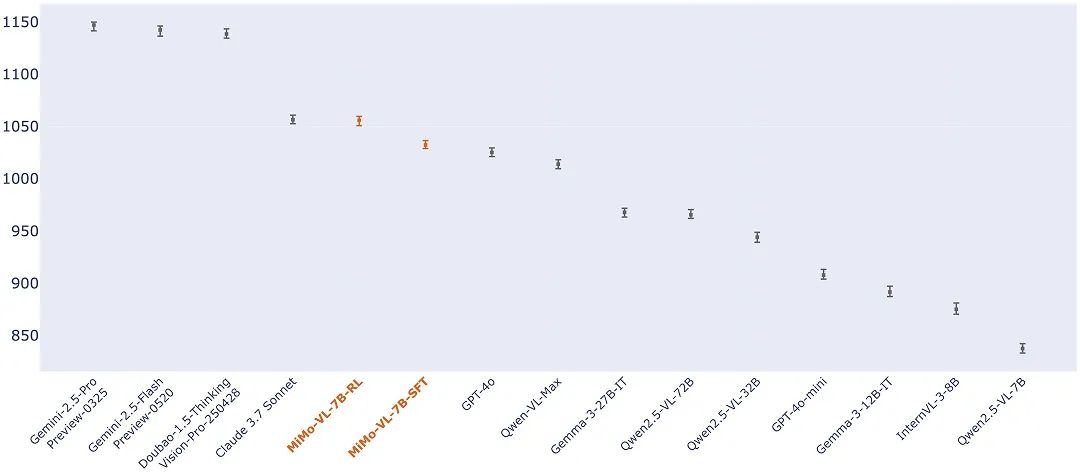 在评估真实用户体验的内部大模型竞技场中,MiMo-VL-7B 超越 GPT-4o,成为开源模型第一。
