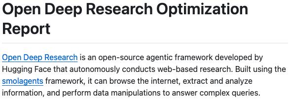 该框架由Huggingface团队开发的可实时进行网络搜索回答问题的多智能体系统。基于这些智能体的原始结构,EvoAgentX对其提示词进行自动优化。