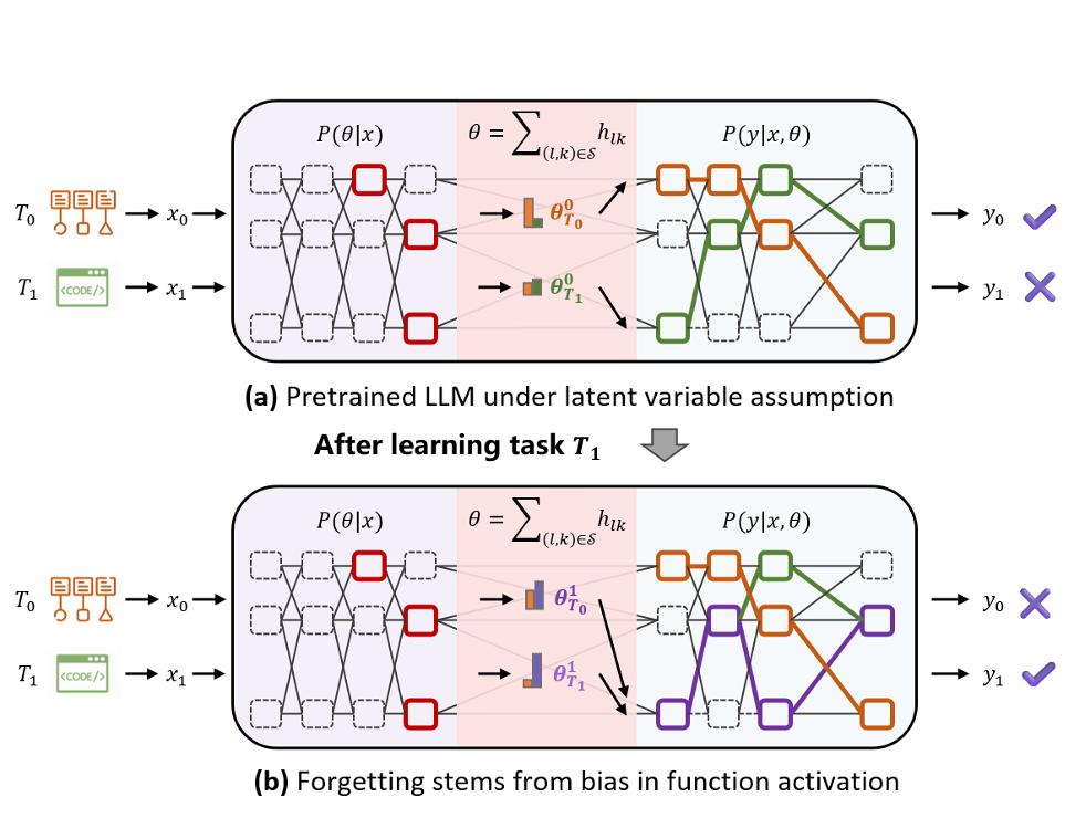 换句话说,模型并没有忘记之前学到的任务处理能力,而是这些能力未被正确激活,反而被新引入的能力所掩盖。
