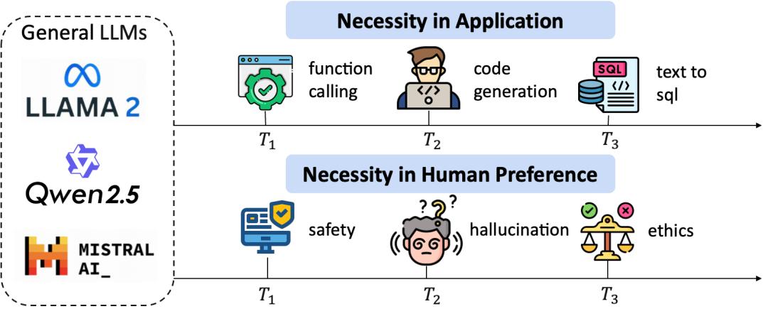 例如,一个通用语言模型在学习新增的用户指令处理后,面临数学推理能力的显著下降。
