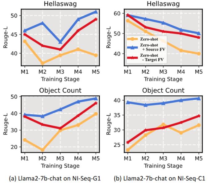 研究人员还设计了一种函数向量引导的训练方法FVG,在微调过程中可以有效保留并对齐函数向量,并在多个持续学习数据集上显著保护了模型的通用学习能力和上下文学习能力。