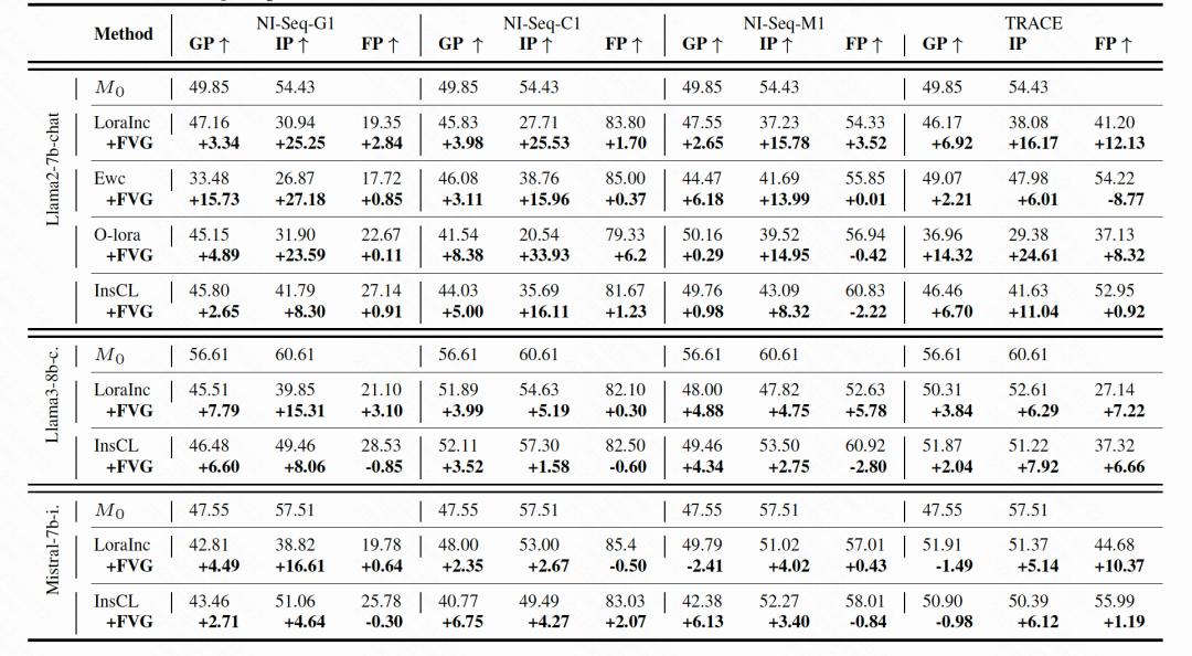 实验结果表明,FVG方法在多个基准测试中显著提高了模型在一般任务和上下文学习任务上的性能,同时保持了模型对新任务的学习能力。