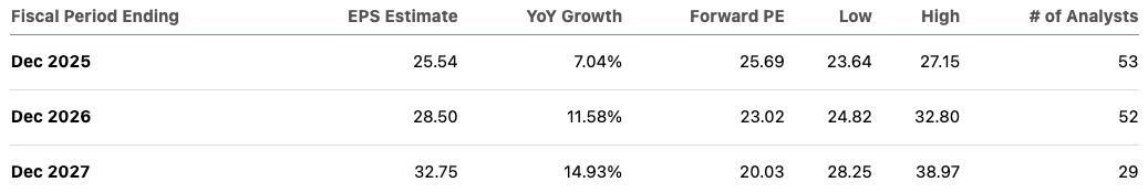 更高的资本支出和 Reality Labs 的亏损都可能在未来几个季度对该股构成阻力。然而,Meta 强大的盈利能力和适中的市盈率应该有助于推动其股价进一步上涨。Meta 目前的市盈率仅为 2025 财年每股收益预期的 23 倍,考虑到未来的每股收益增长预测以及新 AI 工具和应用的盈利潜力,这个估值相当合理。