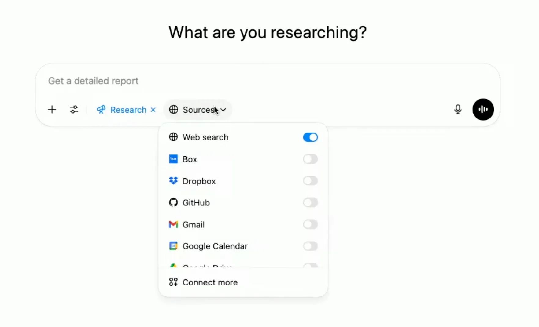 在推出录音模式后,OpenAI 还为云存储服务,同步推出内置集成功能,目前已支持 Google Drive、Dropbox、OneDrive、Box 和 SharePoint 等平台。