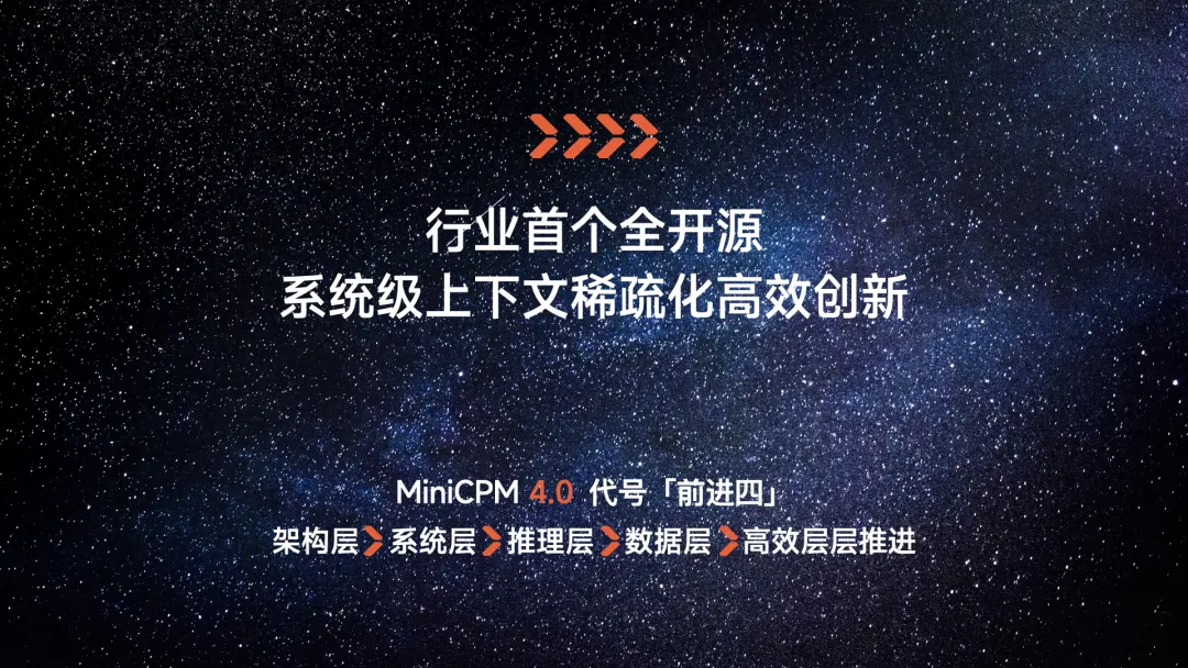 据官方介绍,此次面壁推出的 MiniCPM 4.0 系列 LLM 模型拥有 8B、0.5B 两种参数规模,针对单一架构难以兼顾长、短文本不同场景的技术难题,MiniCPM 4.0-8B 采用「高效双频换挡」机制,能够根据任务特征自动切换注意力模式:在处理高难度的长文本、深度思考任务时,启用稀疏注意力以降低计算复杂度,在短文本场景下切换至稠密注意力以确保精度,实现了长、短文本切换的高效响应。