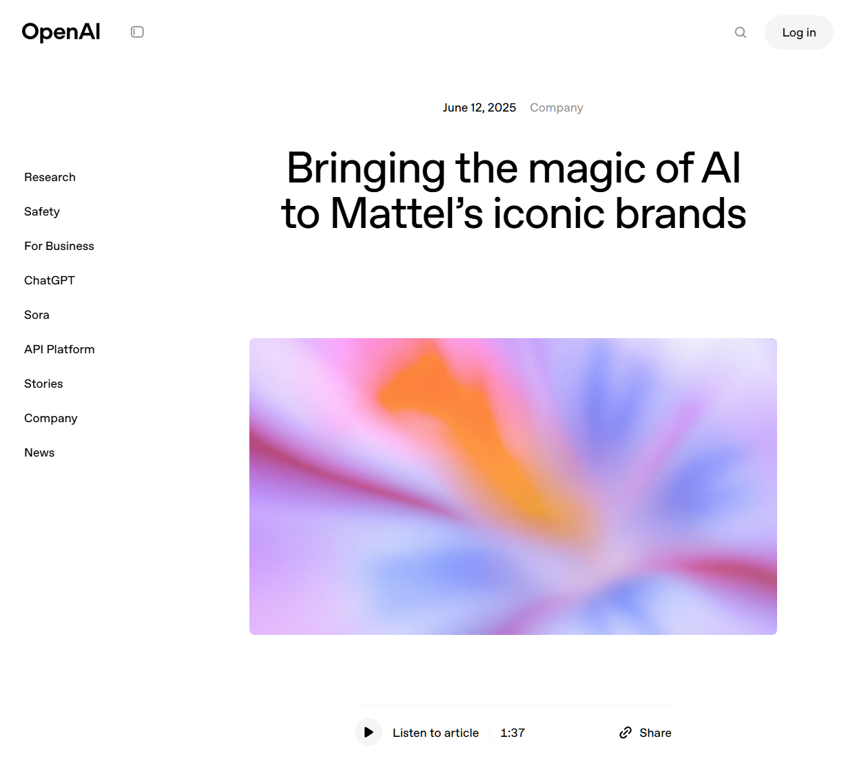 IT之家 6 月 13 日消息,旗下拥有芭比娃娃、风火轮等经典 IP 的美泰公司今日与 OpenAI 达成合作,将生成式 AI 引入玩具开发和日益壮大的 IP 重塑业务中。