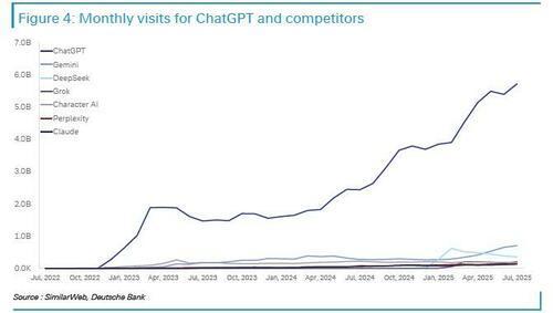 OpenAI的行动升级,势必引发竞争对手的回应。根据SimilarWeb的数据,ChatGPT目前每月访客量高达57亿,而位居第二的谷歌Gemini和DeepSeek则分别约为7亿和3.5亿。