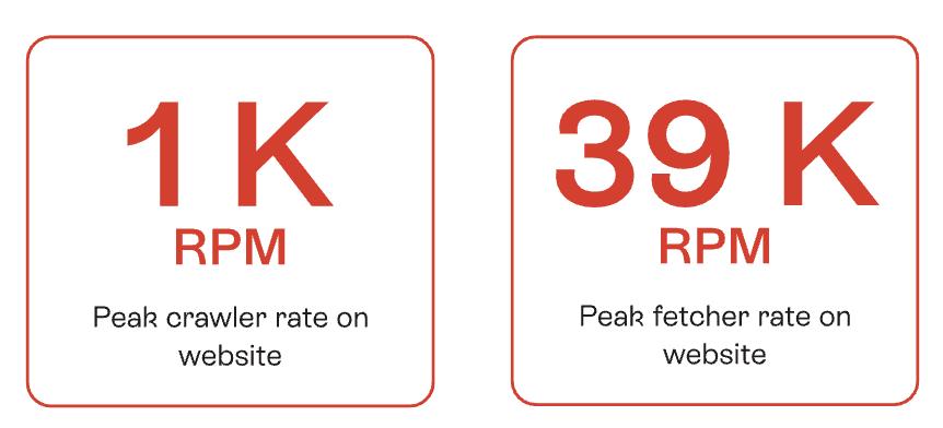 这些 AI 机器人对没有设立防护的网站而言,可不是闹着玩的——其峰值流量甚至能达到每分钟 39,000 个请求!换句话说,一个普通网站可能在一分钟之内被 AI 爬虫和抓取程序“轰炸”上千次,每秒都在承受超负荷压力。