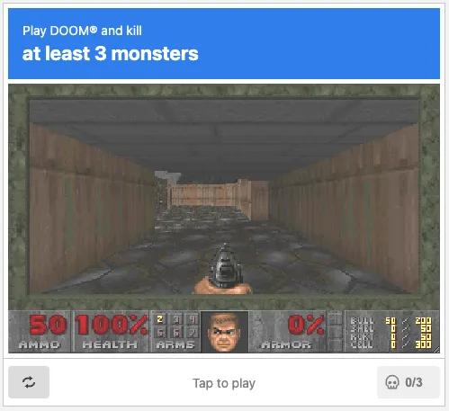 验证码也被赋予了游戏化的新玩法。云服务平台 Vercel 的 CEO Guillermo Rauch 不久前结合 AI 推出了一种《毁灭战士》(DOOM)式验证码。用户要证明自己是人类,必须在“噩梦模式”下击败三个敌人才能进入网站。