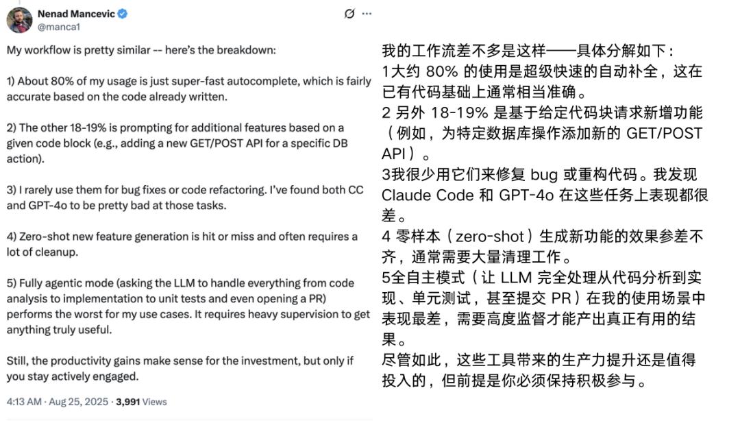 此外,Karpathy的经验还反映了当前AI编程工具在解释性和交互性上的局限。