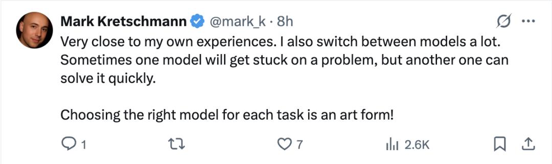 有网友表示:有时候一个模型卡在某个问题上,另一个模型却能快速解决。