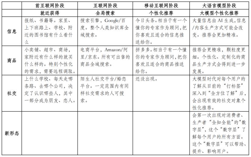 图表5:信息、商品、社交在AI大模型阶段的匹配方式