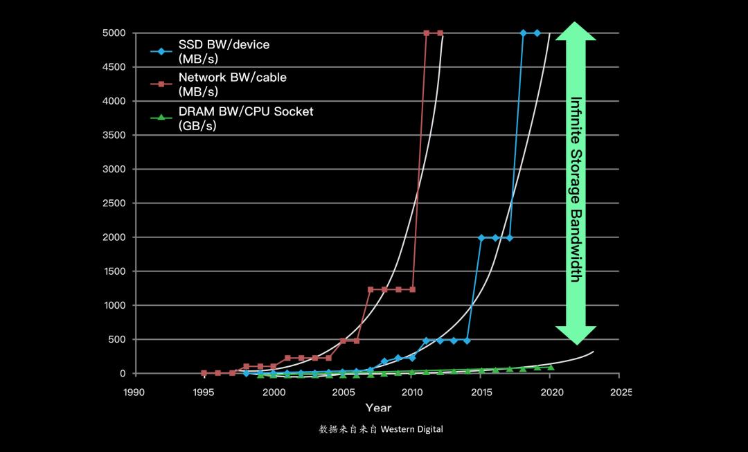不难看出,硬件进入“超摩尔时代”,与传统的存储系统软件已经形成了明显的“剪刀差”: