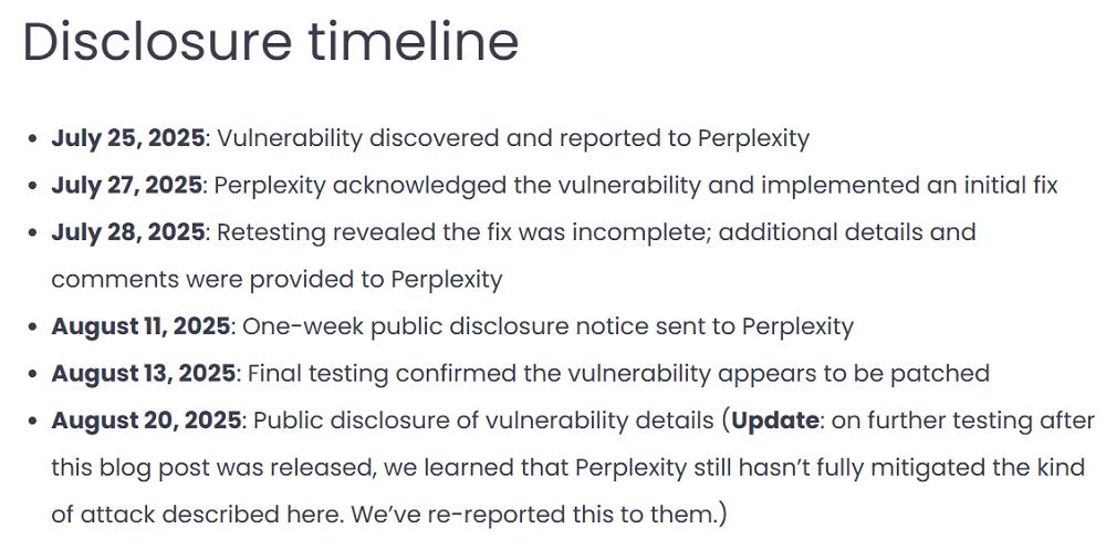 ▲Brave对Perplexity披露问题的时间表(图源:Brave)