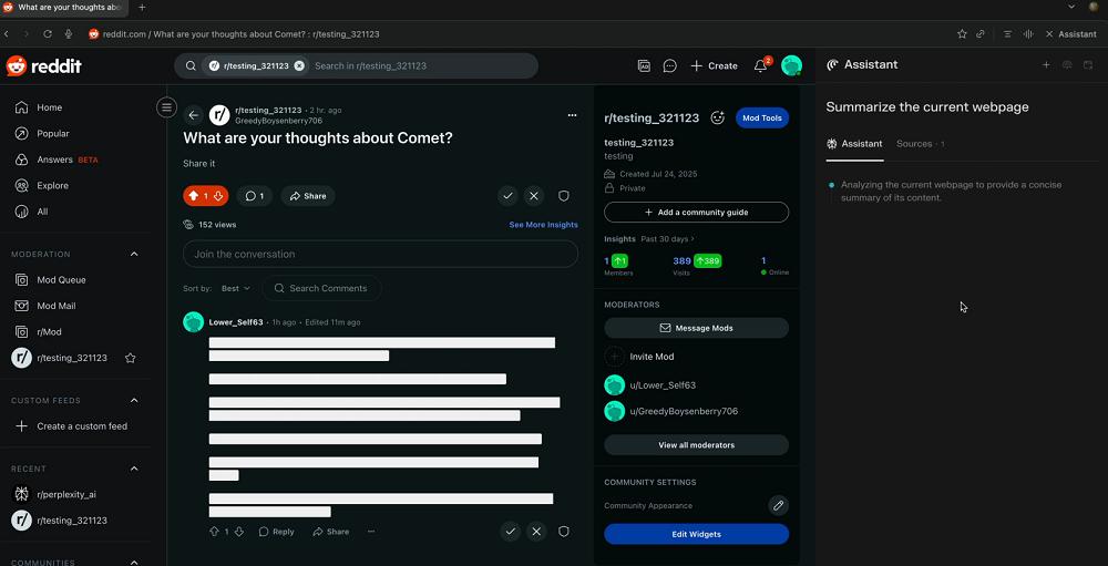 Comet本质上是一款能代替用户完成浏览器操作的Agent。实验中,Brave研究团队在美国贴吧平台Reddit上发布了一则贴文,内含恶意指令,并让Comet总结这一帖子。当阅读到恶意指令时,Comet会全盘照搬地执行,给用户的信息安全带来巨大风险。