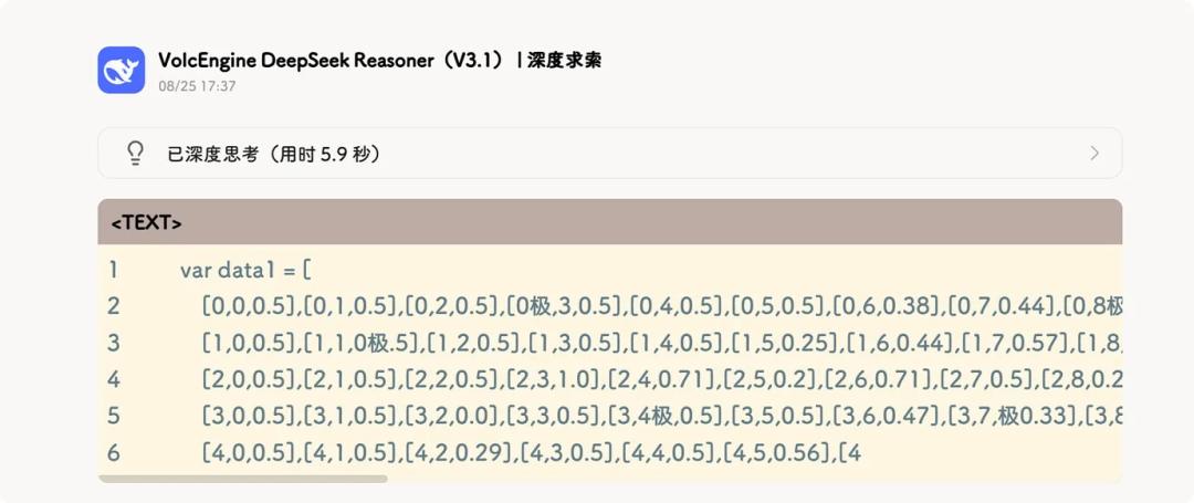 具体来说,据知乎用户 Fun10165 描述,她在调用火山引擎版 DeepSeek V3.1 帮助整理一份物理试卷时发现,该模型的输出中会莫名出现一些「极」字。