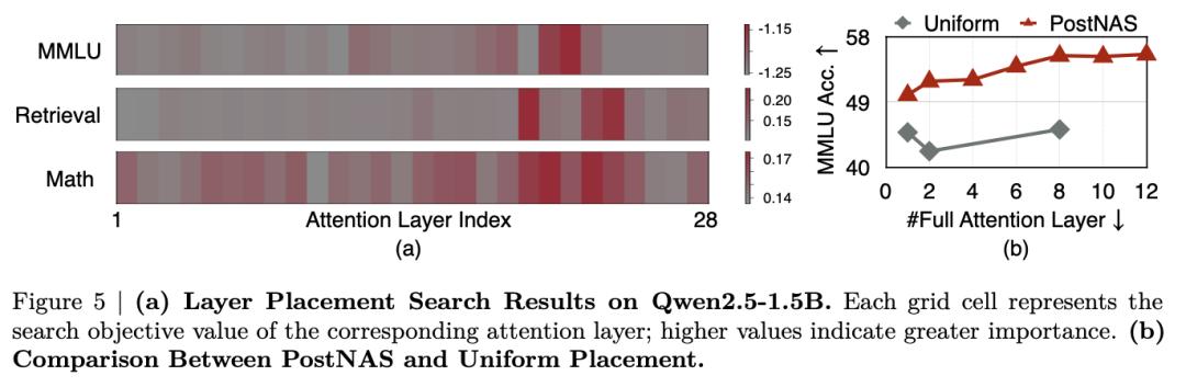 实验结果表明,与常用的均匀放置策略相比,这种学习到的放置方式在MMLU基准上的准确率有显著提升。