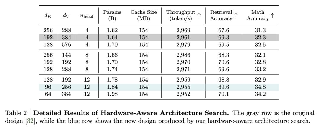 研究团队将KV缓存大小固定为原始设计的规格,并对key维度、value维度以及注意力头数进行了小规模的网格搜索。