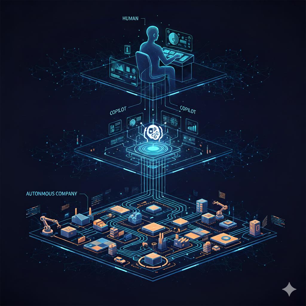 所以这是一个三层系统:人、Copilot、无人公司。