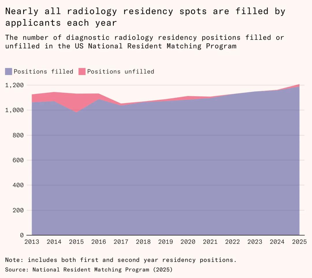 每年几乎所有放射科住院医师名额都能被申请者填满