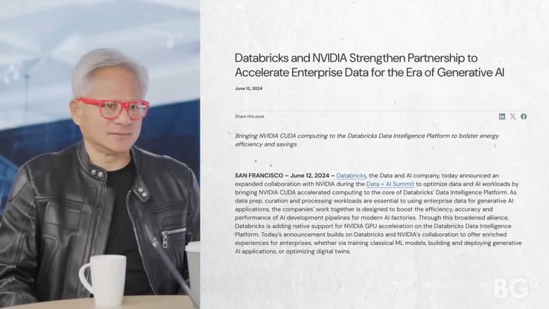 主持人:我从你们的一个竞争对手那里听说,这么做是因为这有助于降低tokens生成的成本,但与此同时,你们的年度发布周期几乎让竞争对手无法跟上。供应链被锁定得更厉害,因为你给了供应链三年的可见性。所以现在供应链——