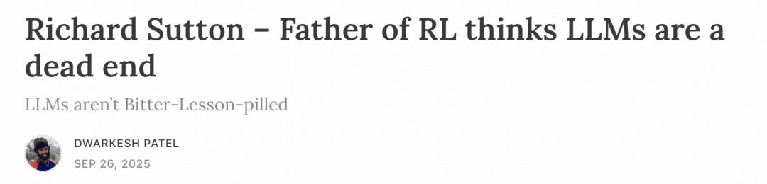 Dwarkesh Patel:您在 2019 年写了一篇题为《惨痛的教训》(The Bitter Lesson)的文章,这也许是 AI 历史上最具影响力的文章。如今,人们正把它作为扩大大语言模型规模的依据,因为在他们看来,这是我们目前唯一能找到的可扩展方案,就是用海量算力去探索世界。有趣的是,您却认为大语言模型并没有真正吸取“苦涩的教训”。