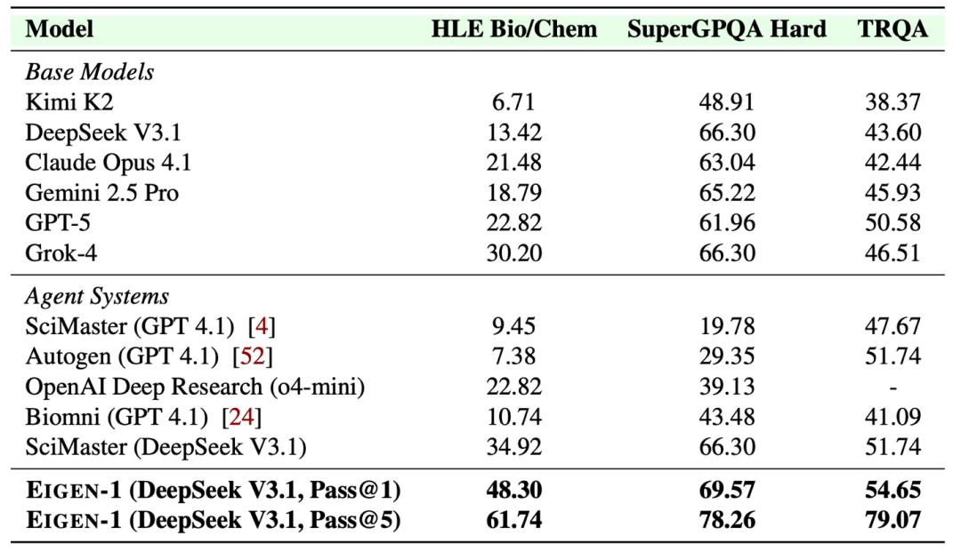 就在最近,由耶鲁大学唐相儒、王昱婕,上海交通大学徐望瀚,UCLA万冠呈,牛津大学尹榛菲,Eigen AI金帝、王瀚锐等团队联合开发的Eigen-1多智能体系统实现了历史性突破——